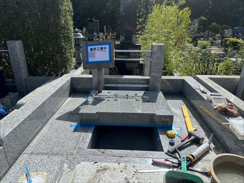 緑ヶ丘霊園にて既存の外柵を生かしたお墓のリフォーム工事を行いました。