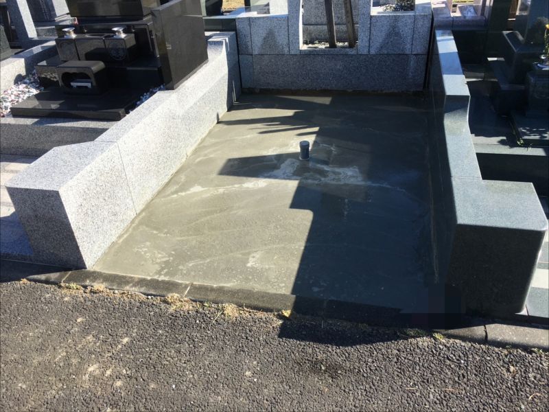 | サービス内容 | 洋型墓石1段、屋根R加工、丸面取り加工、水垂れ加工、墓誌板、外柵、1段カロート、玉砂利 |