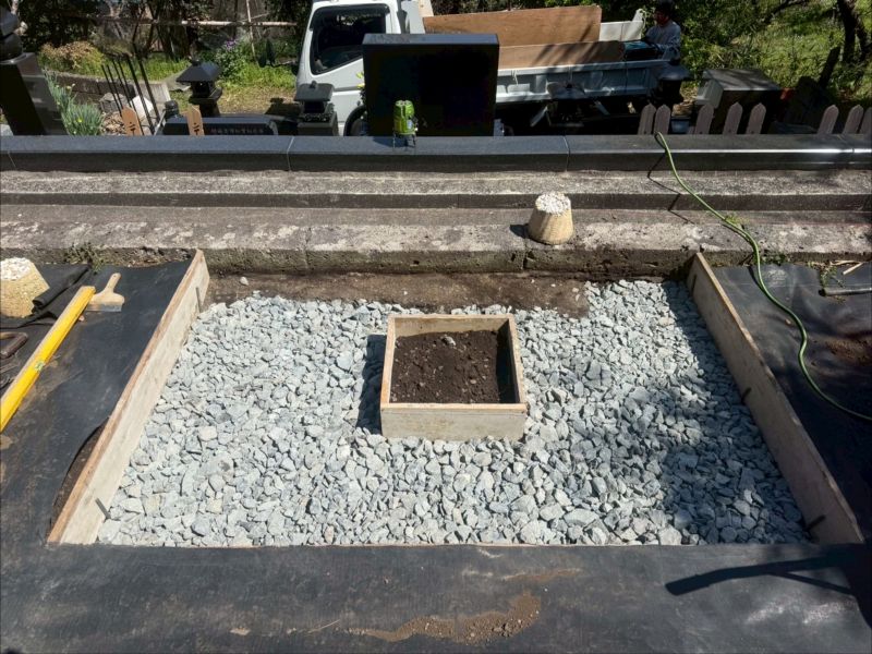 | サービス内容 | 新規基礎工事、石張り外柵、立ちカロート型洋型墓石 |